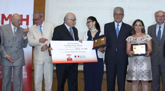 اقامت " جمعية اعضاء جوقة الشرف في لبنان " ( (Legion d’Honneur احتفالا في فندق هيلتون ميتروبوليتان بالاس في سن الفيل سلمت خلاله "جائزة التفوق العلمي اللبناني الفرنسي للعام 2015" Prix d’excellence scientifique franco-libanais والتي تبلغ قيمتها 25 الف دولار اميركي وهي خصصت لافضل بحث علمي في مجال الابحاث البيولوجية والطبية والصحية حققه استاذ - باحث لبناني تابع تخصصه العلمي في الجامعات الناطقة كليا او جزئيا باللغة الفرنسية في لبنان ، او تلقى دروسه الثانوية في معاهد لبنانية – فرانكوفونية .