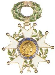 La devise de la Légion d'honneur est "Honneur et Patrie", la couleur, le rouge, les insignes : le collier, la croix, la plaque.